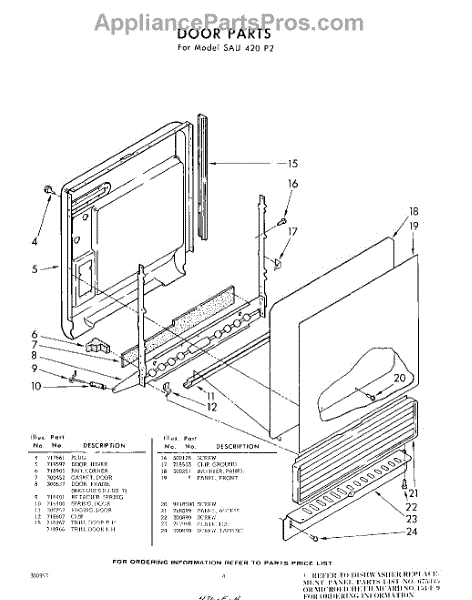 Parts for Whirlpool SAU420P2: 04 - Door Parts