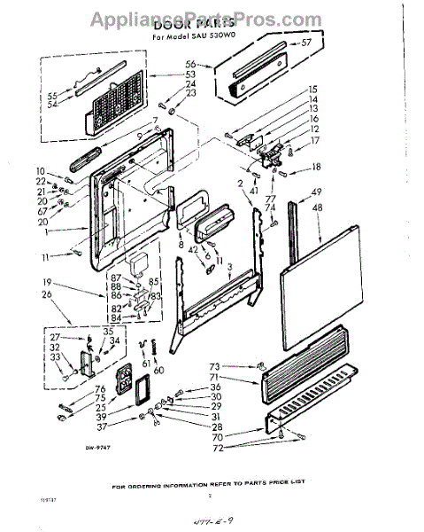 Parts for Whirlpool SAU530W0: 02 - Door Parts