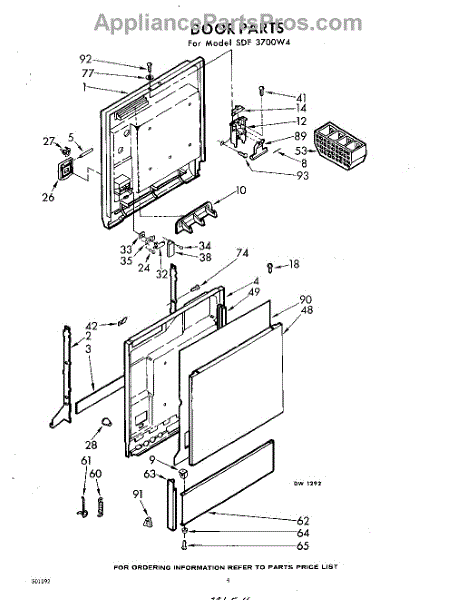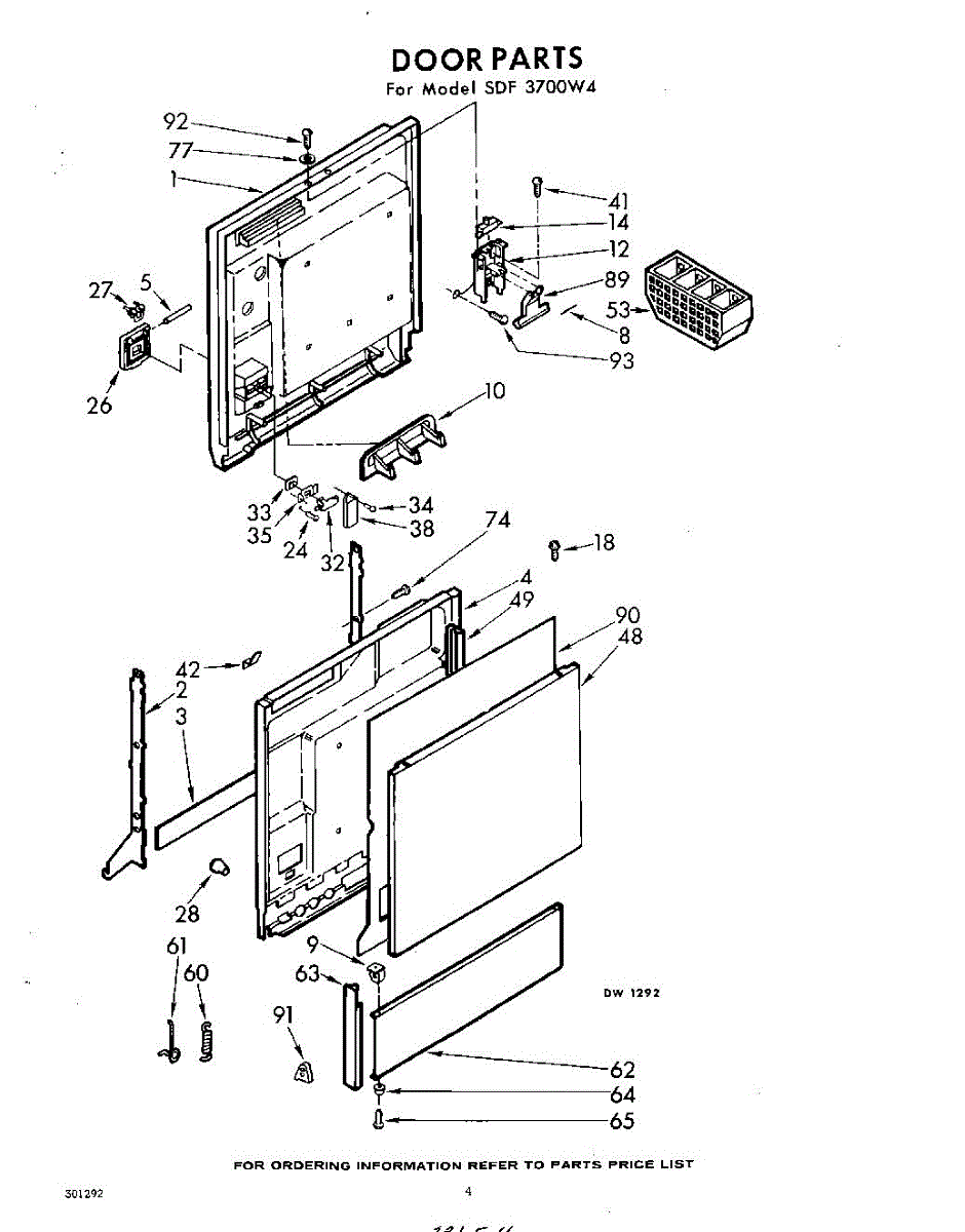 Parts for Whirlpool SDF3700W4: 04 - Door Parts