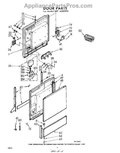 Parts for Whirlpool SDF4500W0: 04 - Door Parts