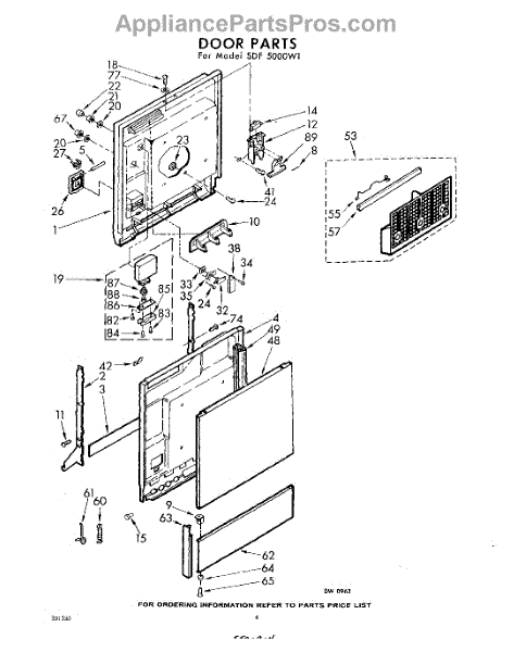 Parts for Whirlpool SDF5000W1: 04 - Door Parts