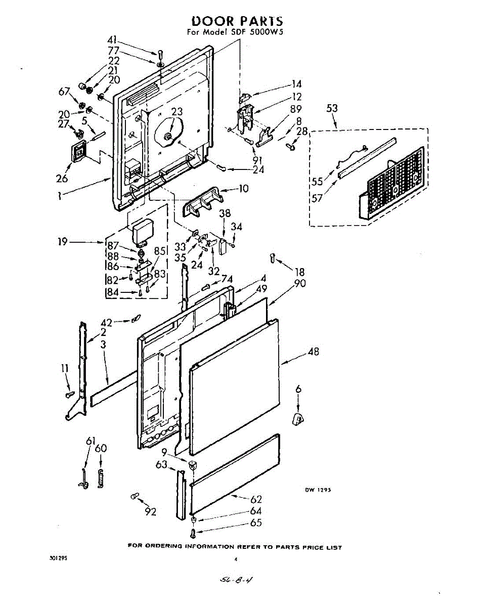 Parts for Whirlpool SDF5000W5: 04 - Door Parts