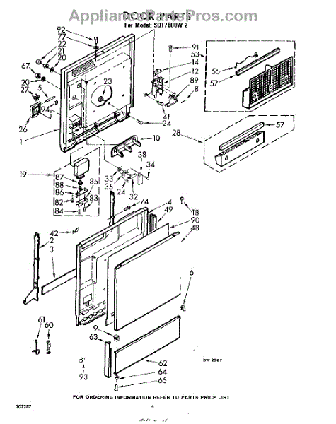 Parts for Whirlpool SDF7800W2: 04 - Door Parts