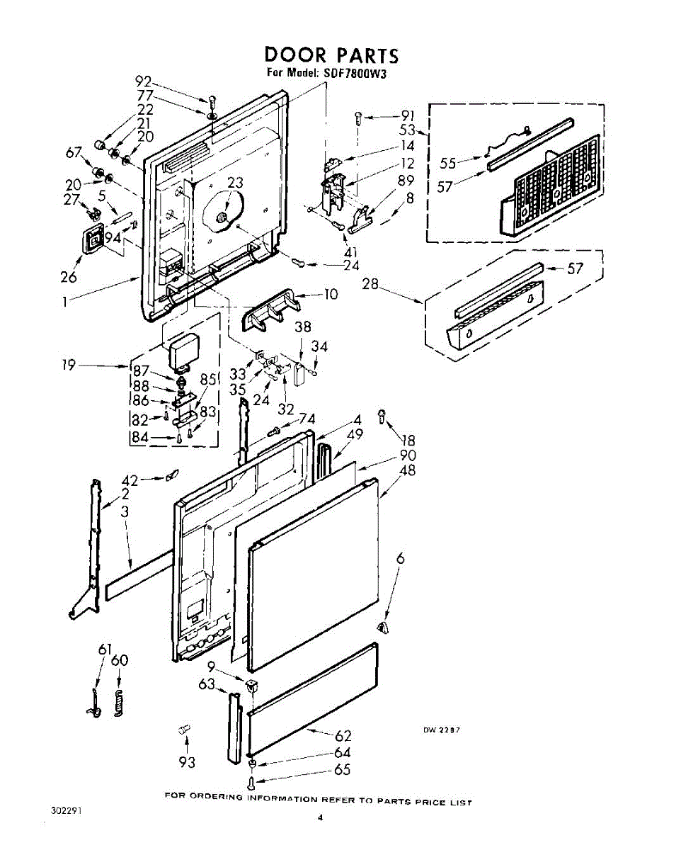 Parts for Whirlpool SDF7800W3: 04 - Door Parts