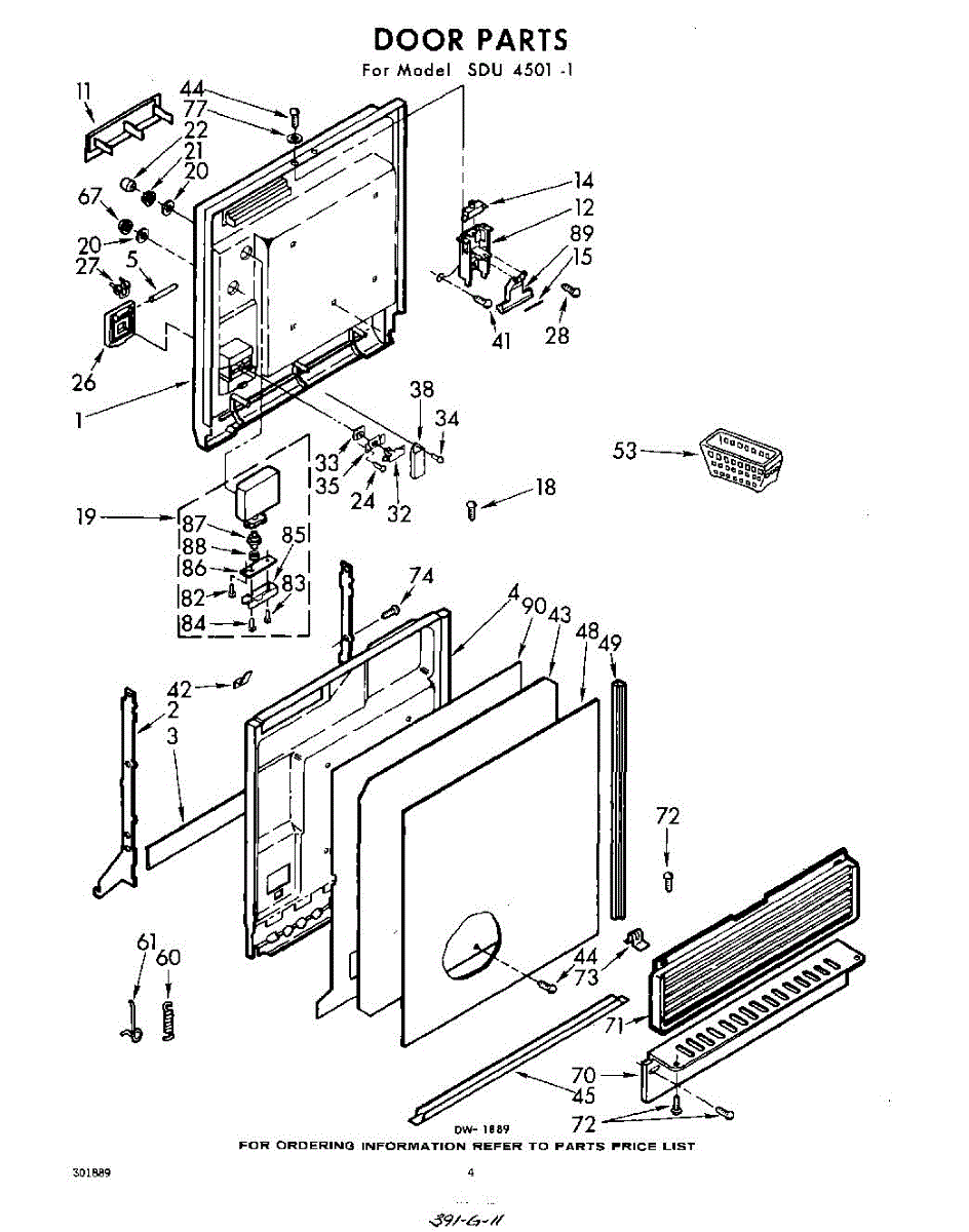 Parts for Whirlpool SDU45011: 04 - Door Parts