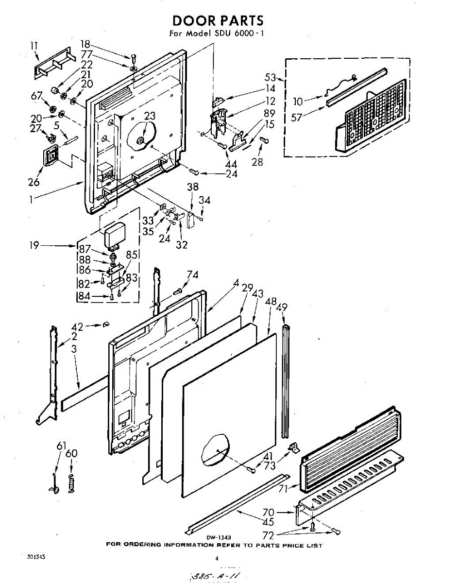 Parts for Whirlpool SDU60001: 04 - Door Parts