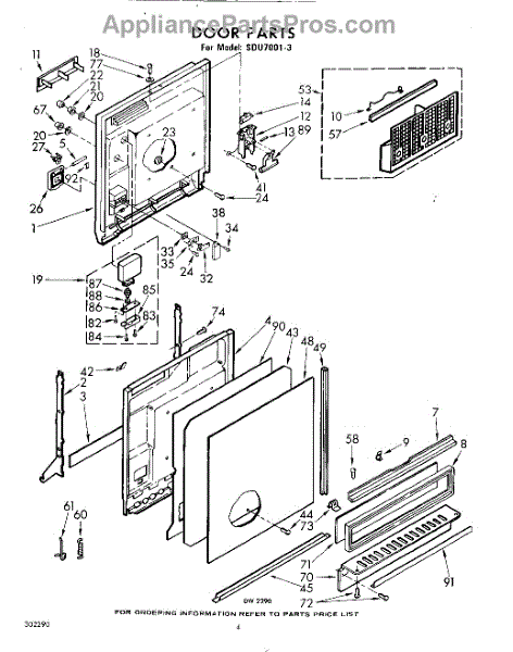 Parts for Whirlpool SDU70013: 04 - Door Parts