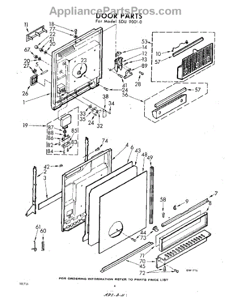 Parts for Whirlpool SDU90010: 04 - Door Parts