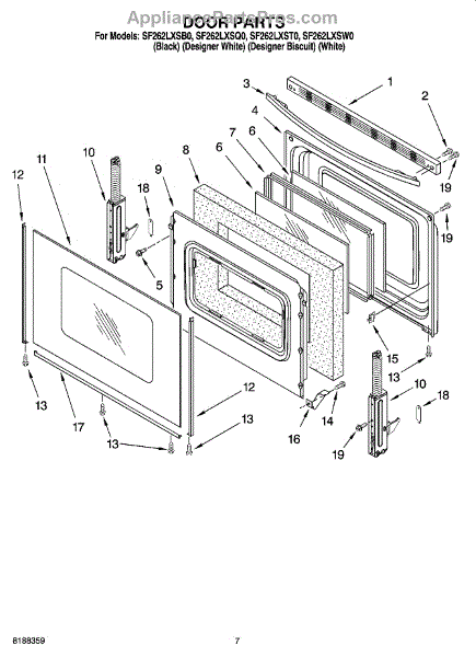 Parts for Whirlpool SF262LXSQ0: 05 - Door Parts
