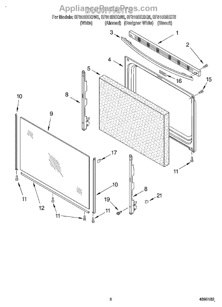 Color: Bisque. For black order 8184858. For white order 8184859. Kit includes two side pieces and one bottom piece. NOTE: This part has been redesigned by the manufacturer. The lower screws are no longer used and the side trim now locks into the lower trim with the dimples on the lower end of the side trim.