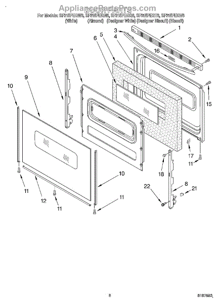 Color: Biscuit. For black glass use WP9762477. For white glass use WP9762476.