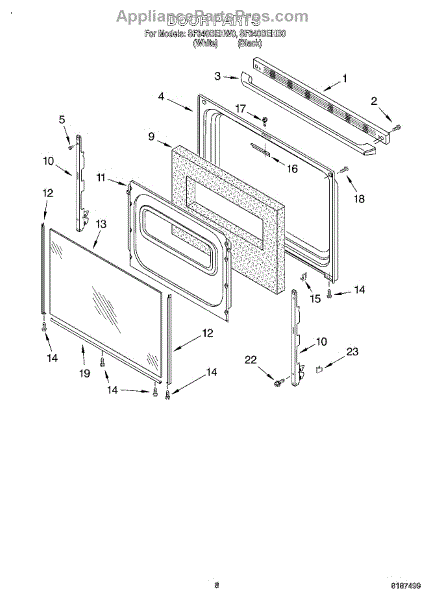 The Oven Door Trim Kit is an OEM part for Whirlpool ranges. This kit includes trim pieces that frame the oven door, providing a finished look and helping to seal the door properly.