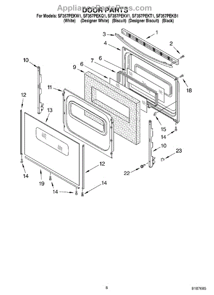Color: Bisque. For black order 8184858. For white order 8184859. Kit includes two side pieces and one bottom piece. NOTE: This part has been redesigned by the manufacturer. The lower screws are no longer used and the side trim now locks into the lower trim with the dimples on the lower end of the side trim.