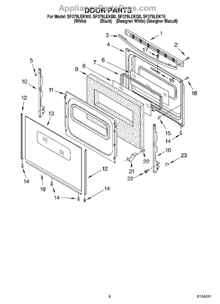 Color: Bisque. For black order 8184858. For white order 8184859. Kit includes two side pieces and one bottom piece. NOTE: This part has been redesigned by the manufacturer. The lower screws are no longer used and the side trim now locks into the lower trim with the dimples on the lower end of the side trim.