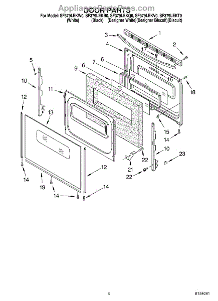 Color: Bisque. For black order 8184858. For white order 8184859. Kit includes two side pieces and one bottom piece. NOTE: This part has been redesigned by the manufacturer. The lower screws are no longer used and the side trim now locks into the lower trim with the dimples on the lower end of the side trim.