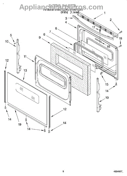 The Oven Door Trim Kit is an OEM part for Whirlpool ranges. This kit includes trim pieces that frame the oven door, providing a finished look and helping to seal the door properly.
