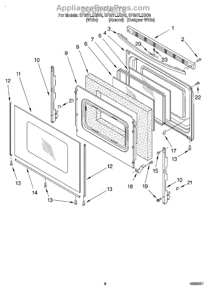 Parts for Whirlpool SF387LEGW5: 06 - Door, Optional Parts