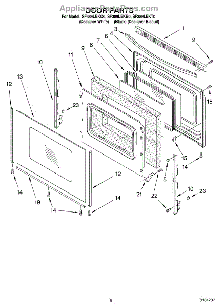 Color: Bisque. For black order 8184858. For white order 8184859. Kit includes two side pieces and one bottom piece. NOTE: This part has been redesigned by the manufacturer. The lower screws are no longer used and the side trim now locks into the lower trim with the dimples on the lower end of the side trim.