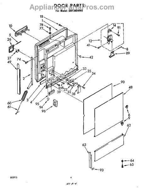 Parts for Whirlpool SHF3804W0: 04 - Door Parts