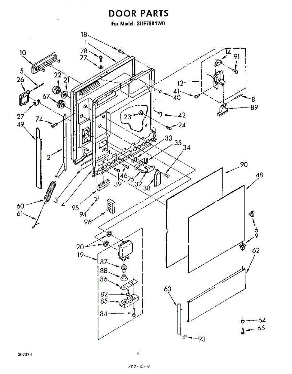 Parts for Whirlpool SHF7804W0: 04 - Door Parts
