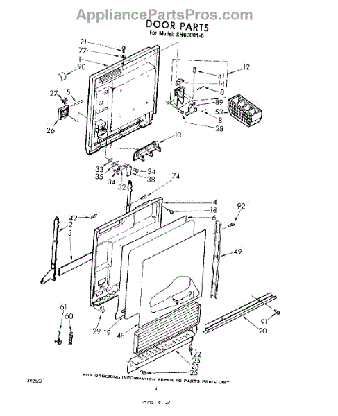Parts for Whirlpool SHU30010: 04 - Door Parts