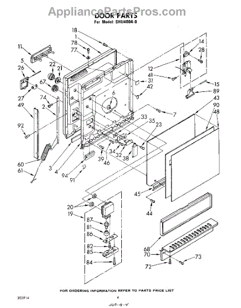 Parts for Whirlpool SHU40040: 04 - Door Parts