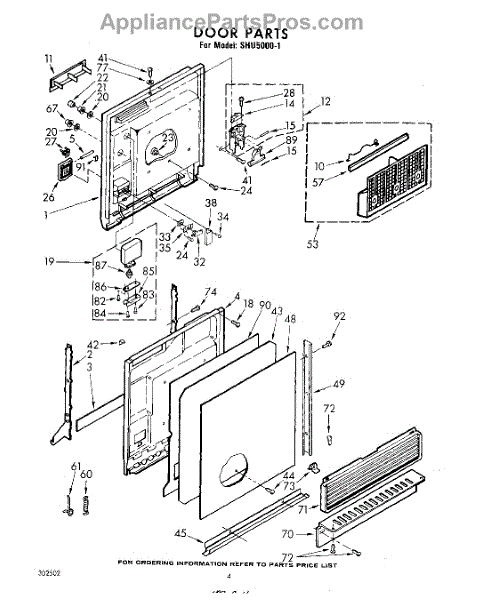 Parts for Whirlpool SHU50001: 04 - Door Parts