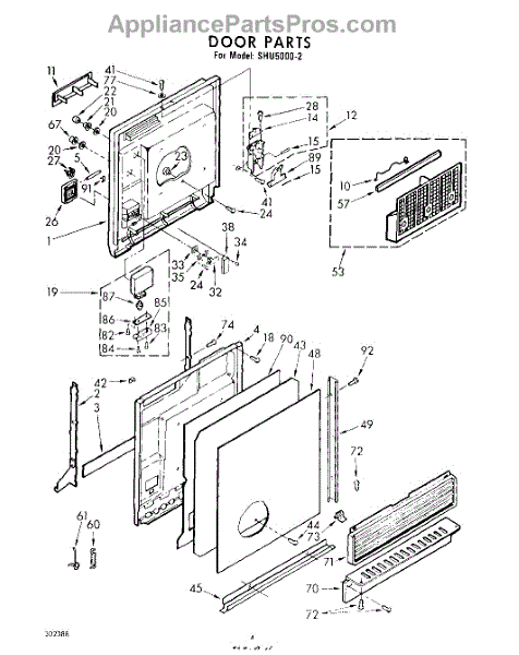 Parts for Whirlpool SHU50002: 04 - Door Parts