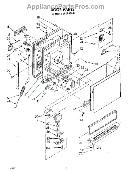 Parts for Whirlpool SHU50040: 04 - Door Parts
