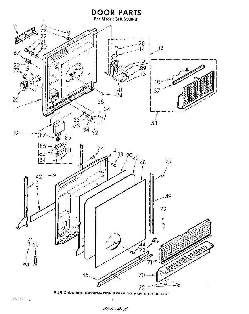 Parts for Whirlpool SHU55000: 04 - Door Parts