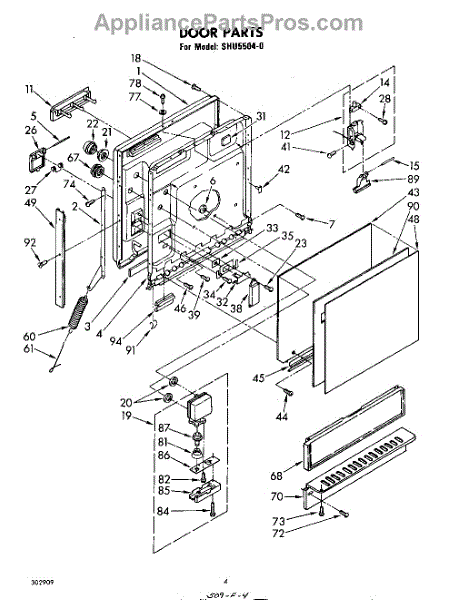 Parts for Whirlpool SHU55040: 03 - Door Parts