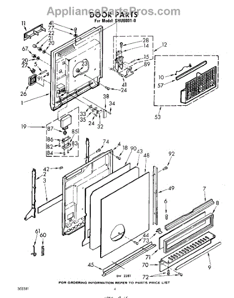 Parts for Whirlpool SHU60010: 04 - Door Parts