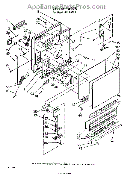 Parts for Whirlpool SHU80042: 03 - Door Parts