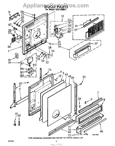Parts for Whirlpool SHU90001: 04 - Door Parts