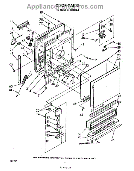Parts for Whirlpool SHU90041: 03 - Door Parts