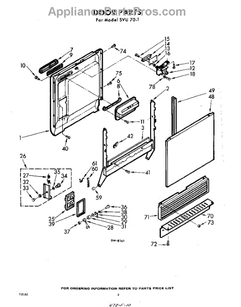 Parts for Whirlpool SVU70W1: 02 - Door Parts