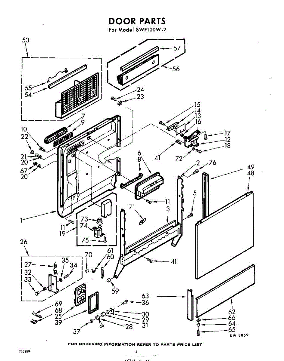 Parts for Whirlpool SWF100W2: 04 - Door Parts