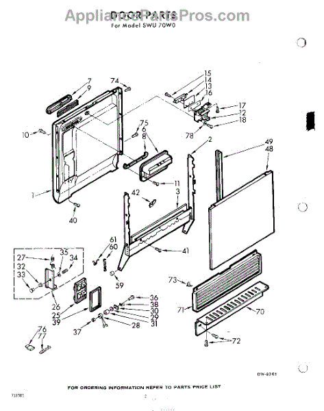Parts for Whirlpool SWU70W0: 02 - Door Parts
