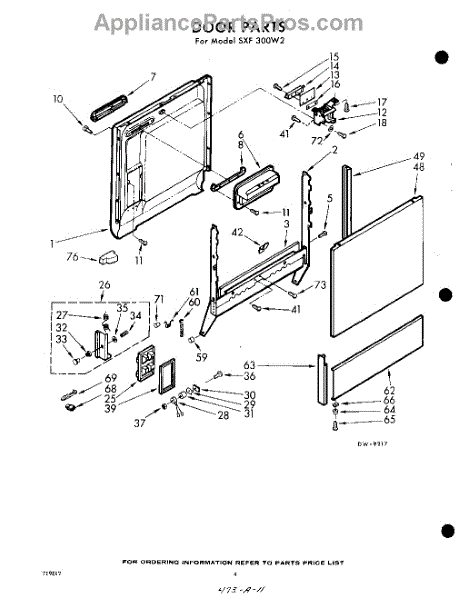 Parts for Whirlpool SXF300W2: 04 - Door Parts