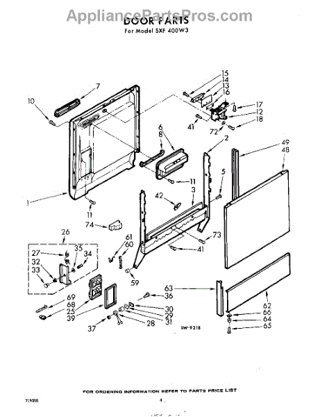Parts for Whirlpool SXF400W3: 04 - Door Parts