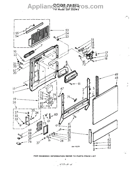 Parts for Whirlpool SXF500W4: 04 - Door Parts
