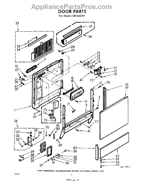 Parts for Whirlpool SXF600W1: 04 - Door Parts