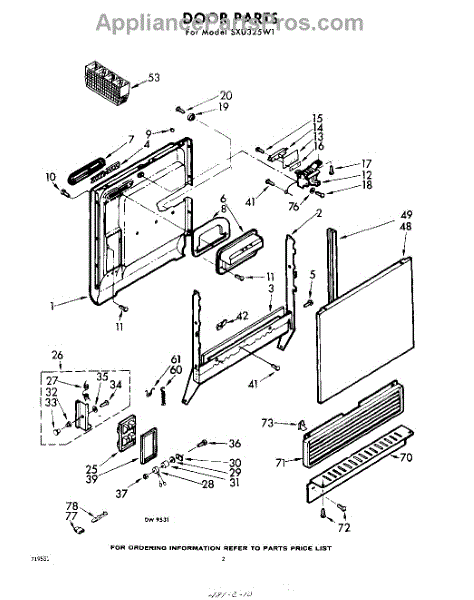 Parts for Whirlpool SXU325W1: 02 - Door Parts