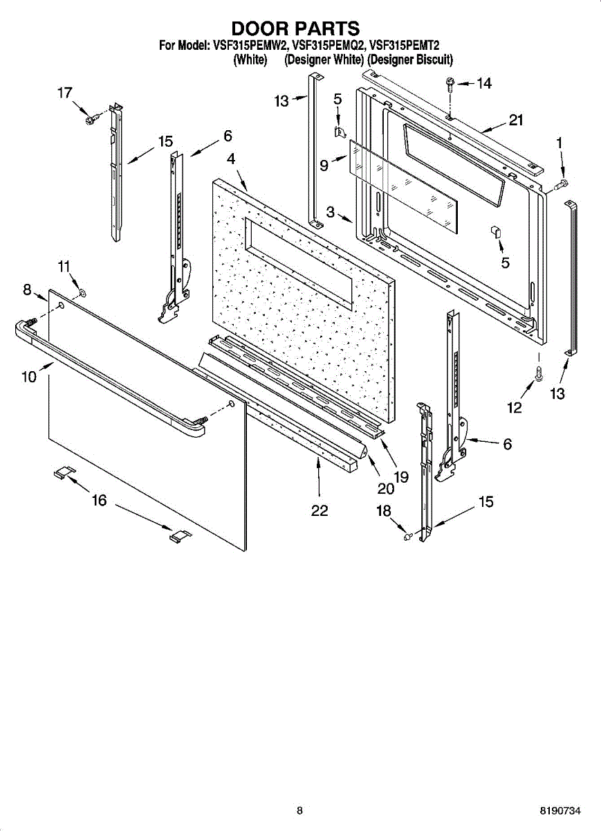 Parts for Whirlpool VSF315PEMW2: 06 - Door Parts, Miscellaneous Parts