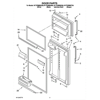 Parts for Whirlpool W1TXEMMWQ00: 02 - Door Parts