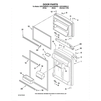 Parts for Whirlpool W2RXNMMWQ01: 02 - Door Parts