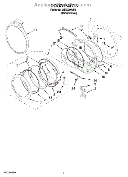 The Door Hinge is an OEM replacement part for Whirlpool dryers. Supporting the access door to the drum, the hinge provides smooth rotational movement during loading and unloading cycles. Causes relate to bearing degradation from constant friction, bent hinge plates from impacts over time, or stripped internal teeth losing synchronized motion. Symptoms of a faulty hinge can include: