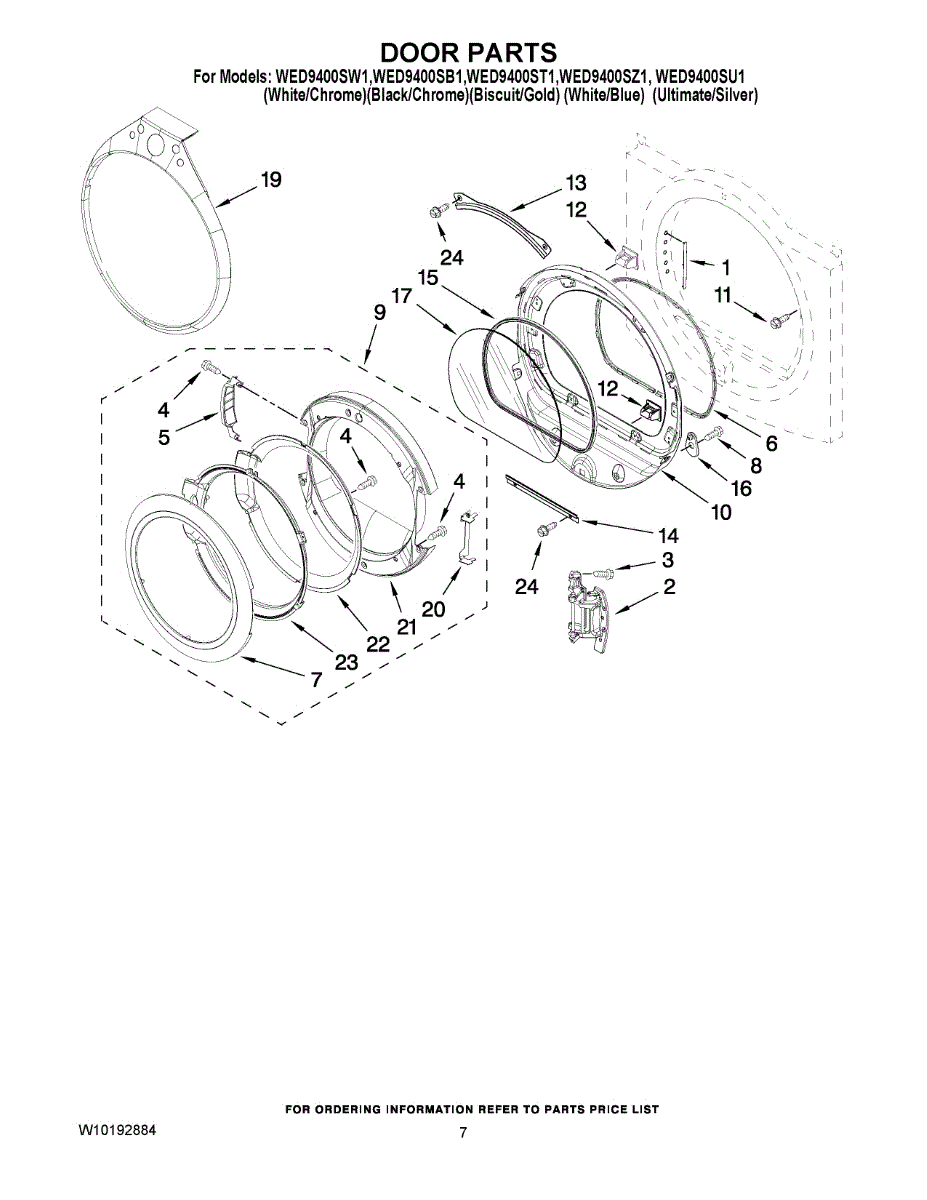 Replace your cracked, damaged, or broken dryer door assembly. This complete door installs on the front of your dryer cabinet. Ideal for worn hinges or panels.