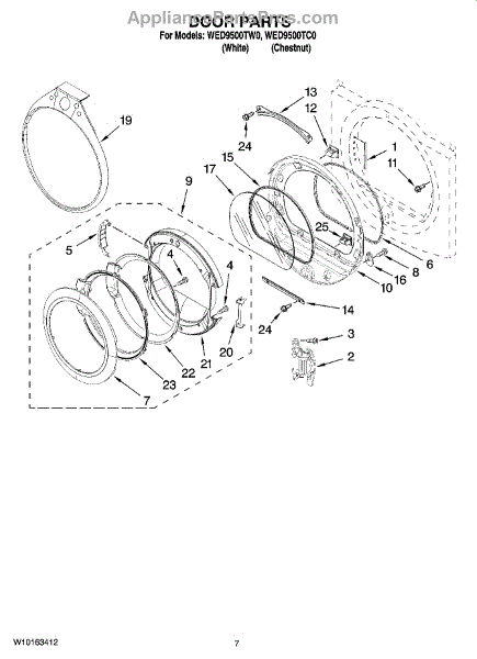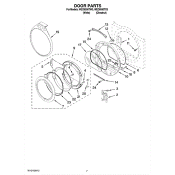 The Door Hinge is an OEM replacement part for Whirlpool dryers. Supporting the access door to the drum, the hinge provides smooth rotational movement during loading and unloading cycles. Causes relate to bearing degradation from constant friction, bent hinge plates from impacts over time, or stripped internal teeth losing synchronized motion. Symptoms of a faulty hinge can include: