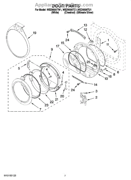 The Door Hinge is an OEM replacement part for Whirlpool dryers. Supporting the access door to the drum, the hinge provides smooth rotational movement during loading and unloading cycles. Causes relate to bearing degradation from constant friction, bent hinge plates from impacts over time, or stripped internal teeth losing synchronized motion. Symptoms of a faulty hinge can include: